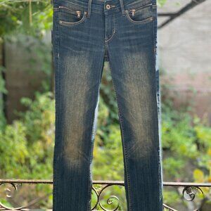 Modern classic denim with a zipper front pocket detail. Ankle-length fit pairs perfectly with flats or heels for a chic, effortless look.