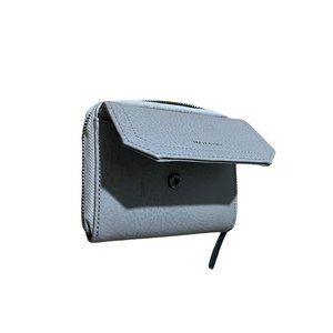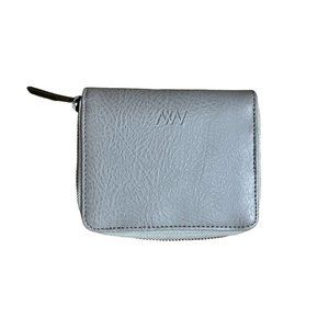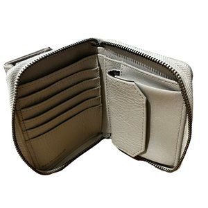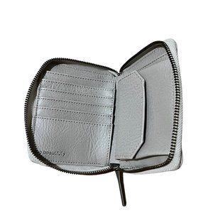 Interior: 5 card slots, 1 bill compartment, change pouch with snap closure.