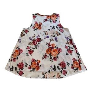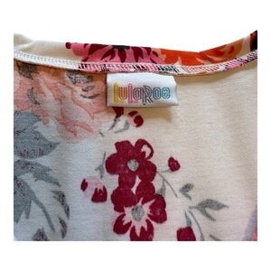 The LulaRoe Kristina is a flared V-neck tank top — with a high-low hemline, and a fit similar to the Perfect Tank. Pretty floral design!