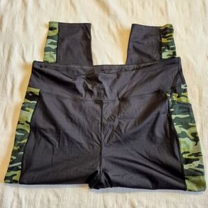 LuLaRoe Rise Brave line women's size 3X leggings black with green camo stripe has 3 pockets, NWOT