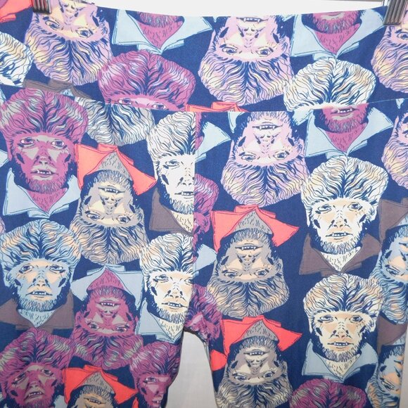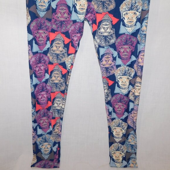 This pair of Lularoe Womens TC Tall & Curvy (Fits size 12 - 18 ) Pink Purple Blue Wolfman Halloween Leggings are in great clean bright condition. Leggings are 92% Polyester - 8% Spandex - Machine washable.