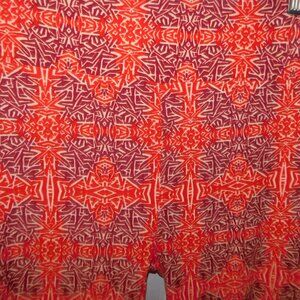 This pair of LuLaroe Red Burgundy Hidden Bat Womens OS ( Fits size 2 to 10 ) fashion leggings are in great clean bright condition. Leggings are 92% Polyester – 8% Spandex – Machine washable Cold – Tumble Dry Low. Buttery Soft Feel.