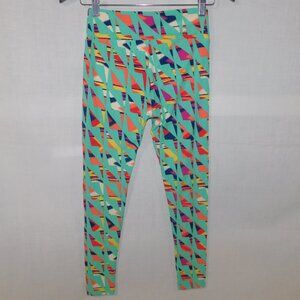 LuLaroe Teal Multicolour Zig Zag Pattern Print Womens Leggings OS size 2 -10