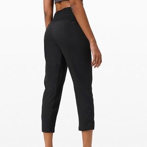 Brand new pair of black LuLuLemon studio crops. I ordered these and hoped they would work so washed them (hung to dry), but sadly they are too small :(