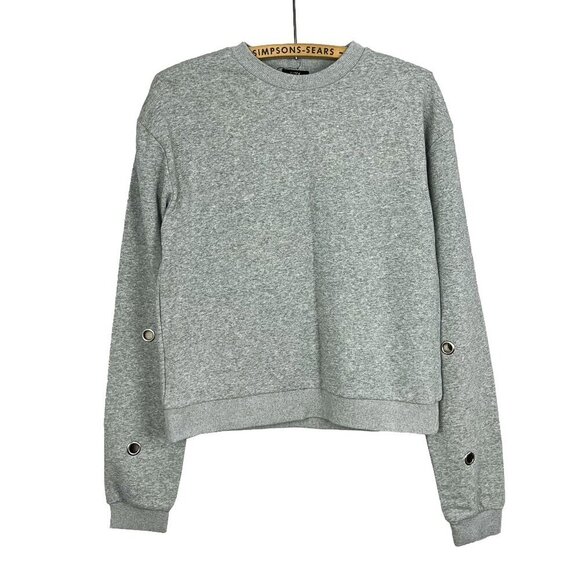 Lucca Womens Heather Grey Grommet Sleeve Crewneck Sweater Small