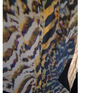 Bought as the actual runway dress from 2013 Toronto Fashion Week MATIS by Lucian Matis spring/summer show. Gorgeous readytowear dress is stretchy and comfortable, only worn once! Muted animal print with black body-con style sides. Matis described the collection as “bright colors of the plants and animals of the Amazon, mixed with the wild patterns and prints; like leopards, feathers, and shimmering forest pools.”