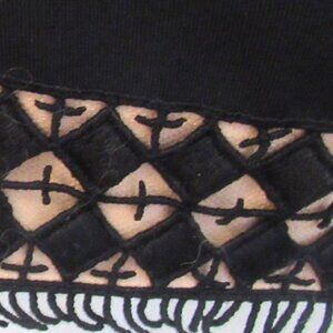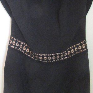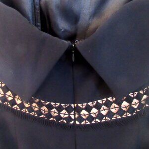 Lucian Matis Sleeveless Black Dress with Tan Lace Inserts, Knee Length S 10 K116