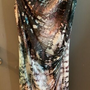 This elegant sleeveless dress features a stunning multicolor design, perfect for any occasion. The vibrant colors add a touch of sophistication and style.