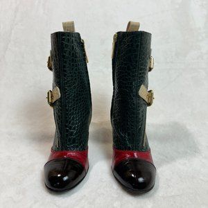 Luciano Padovan Womens Boots High Heel Shoes Red & Green Crocodile Italy Size 36