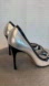 Luciano Padovan metallic silver snake embossed black trim high heels 39 leather