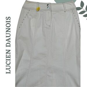 This Lucien Daunois white midi skirt brings an elegant blend of structure and flow. Featuring a flattering A-line silhouette with soft seaming details, it’s the perfect piece to style with blouses, tanks, or layered knits. A versatile neutral tone makes this a go-to for boho-inspired looks, spring outings, or casual summer elegance.