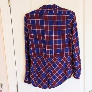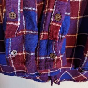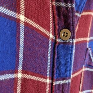 Lucky Brand Red Blue Plaid Flannel Button Down Tunic Red Blue Purple.