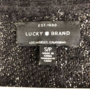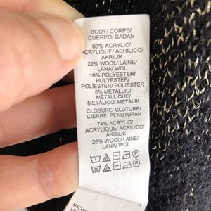 Lucky BRAND Wool Blend Black Open Cardigan Metallic Gold Leaf Motif Sz S