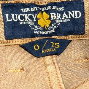 ⭐️🤎Stunning comfy fit dressy casual chic style Lucky Braid Charlie Skinny Metallic Gold jeans Sz 0 /25 Approx measurements and EUC photographed fits small/ ankle cropped Same day shipping from smoke free home