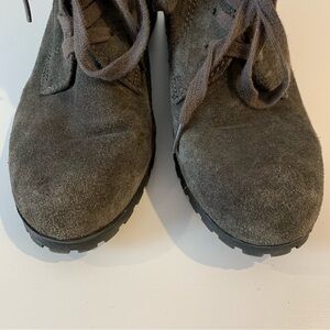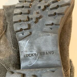 Lucky Brand dark grey suede lace-up boots in great used condition. Slight pilling on fabric lining. Heel height 1.5"