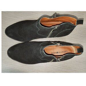 Lucky Brand Beniee Bootie Black Suede Dual Zip Womens Size 8.5 / 38.5