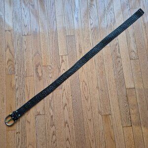 Lucky Brand Black Cutout Leather Belt Silver-Tone Buckle Medium