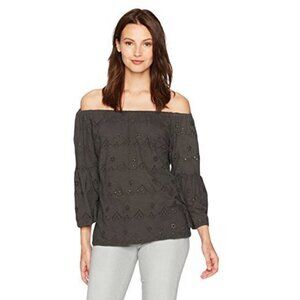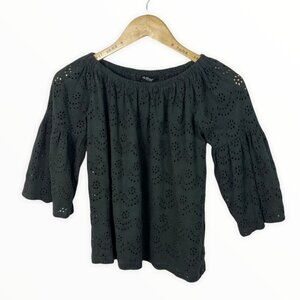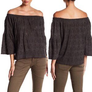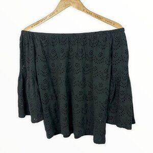 Lucky Brand Black Eyelet Lace Off The Shoulder Bell Sleeve Top Size XS Bohemian
