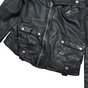 Lucky Brand Black Label Titan Slim Leather Moto Brando Jacket Black Mens Large