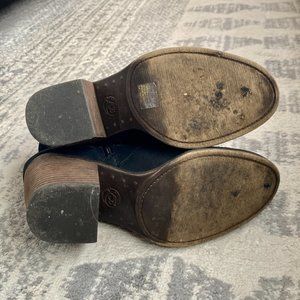 Lucky Brand Black Suede Leather Buckle Ankle Boots Stacked Heel