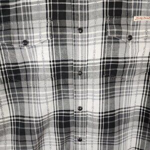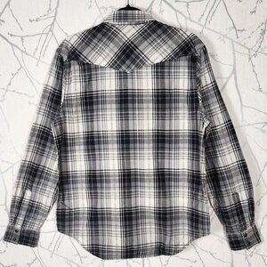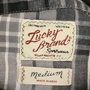 Lucky Brand Black White Plaid Checks Pearl Snap Western Shirt