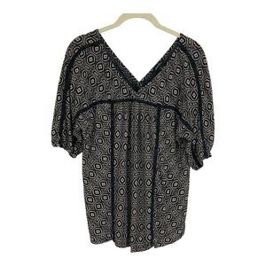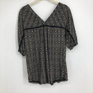 Lucky Brand Black and White Hayley Geo Print V-neck 1/2 Sleeve top S