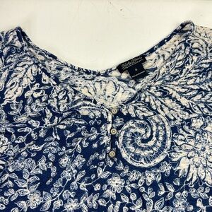 Lucky Brand Blue & White ¾ sleeve Peasant Top