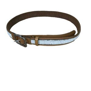 Lucky Brand Brown Leather Belt With White Beading Silver Studs And Silver Coloured Hardware