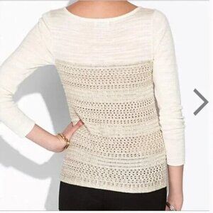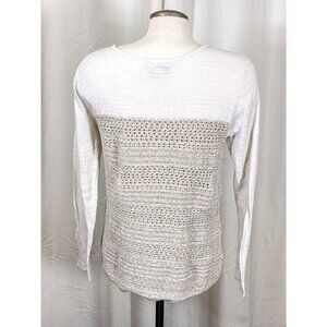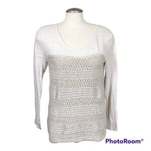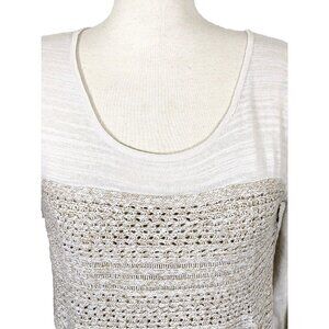 Lucky Brand Womens XL Mixed Media Cotton Wool Blend Knit Top Beige Cream Semi Sheer Minimalist Boho Coastal