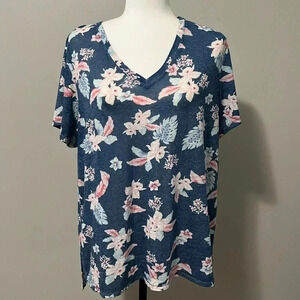 Lucky Brand Classic V Neck Floral Pattern T Shirt