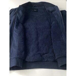 Lucky Brand Cotton Sherpa Lined Bomber Jacket Men’s L Full Zip Navy Blue