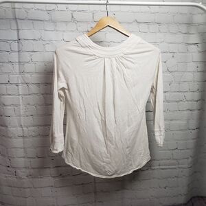 Lucky Brand cream top. Horseshoe neck with 3/4 puff sleeves. Soft casual jersey knit t-shirt matrrial.