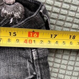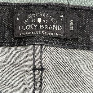Lucky brand black distressed jeans. Floral embroidery. Slim boyfriend. Raw hem, these are ankle length for someone who is. 5’4”. Organic cotton with a bit of spandex. Measurements in pics: waist, length and inseam. Excellent condition.