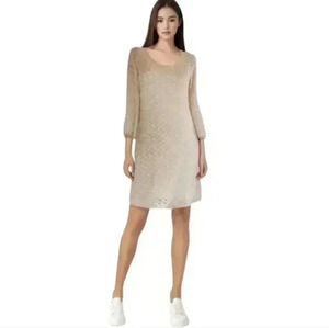 Lucky Brand Dress Mini Length Long Sleeves Gold Crochet Top Cream Y2K Women XS