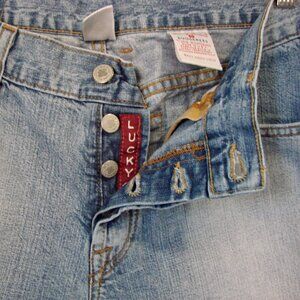 - very cute vintage Y2K Lucky Brand cropped jeans feature a button front, 5-pocket style with a flare leg and light wash