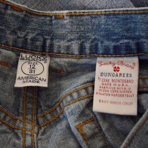 Lucky Brand Dungarees Easy Rider Crop Jeans Flare Leg Vintage Y2K Boho Light Wash ~ Size 12 31 ~ 100% Cotton ~ Made in USA Los Angeles, California