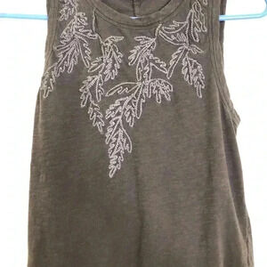 Lucky Brand Embroidered Leaf Ruched Back Tank SM