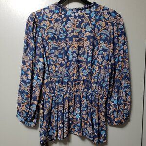 Lucky Brand Faux Wrap Floral Paisley 3/4 Sleeve Top