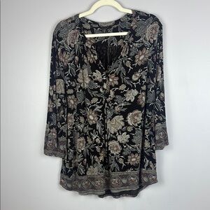 Lucky Brand Floral Black Brown and Gray 3/4 Sleeve Blouse Size 2X