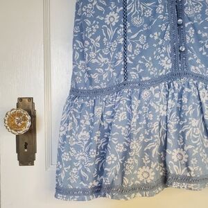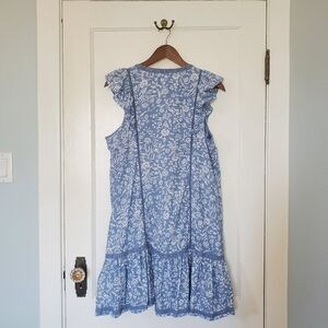 Lucky Brand Floral Boho Mini Dress – Size M – Wedgewood Blue