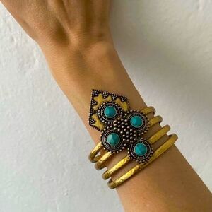 Lucky Brand Gold Tone & Faux Turquoise Boho Cuff Style Bracelet