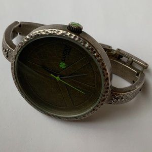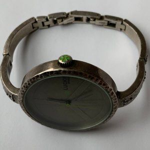 This listing is for a Lucky Brand grey unisex stainless steel watch with a stylish look. This watch is very eye-catching, modern and the perfect accessory for every day wear. The watch has a fold over clasp that closes tightly.