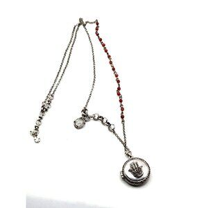 Lucky Brand Hamsa Hand LOCKET 30 inch Silver Chain Rhinestones Red Beads crystal