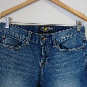 Lucky Brand Jean Shorts Abbey Bermuda Long Denim Frayed Raw Hem Size 4 / 27 ~ 99% Cotton, 1% Spandex