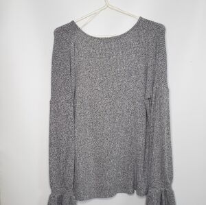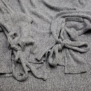 Lucky Brand Knit Grey Crew Neck Sweater Tie Wrist Size Large