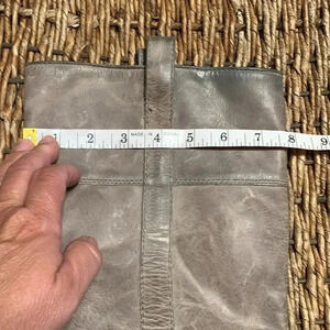 Gorgeous leather boots, grey/stone in color with natural weathered/distressed hide. They are gently worn and adds character to these boots. Square heel. Please see photos for details.