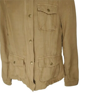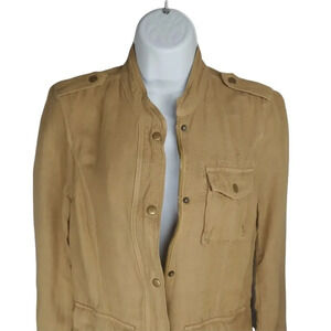 Lucky Brand Live in Love Military Style Jacket Linen Khaki Brown XS