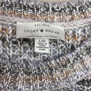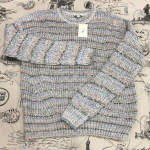Marled yarn adds a multihued, striped effect to this soft and cozy crewneck sweater.