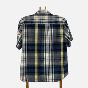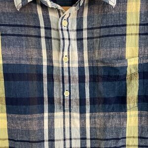 Lucky Brand Men’s Half Placket Shirt Size XL Plaid Short Sleeve Cotton Linen