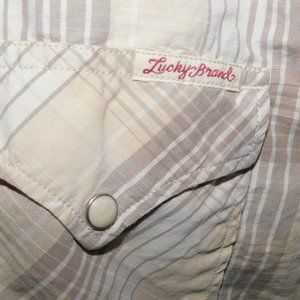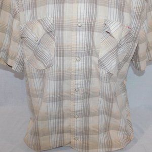 Lucky Brand Mens XL Cream Tan Snap Front Short sleeve Western Shirt